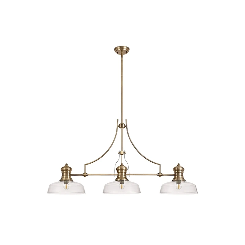 - 3 light bar pendant in an antique brass and clear finish