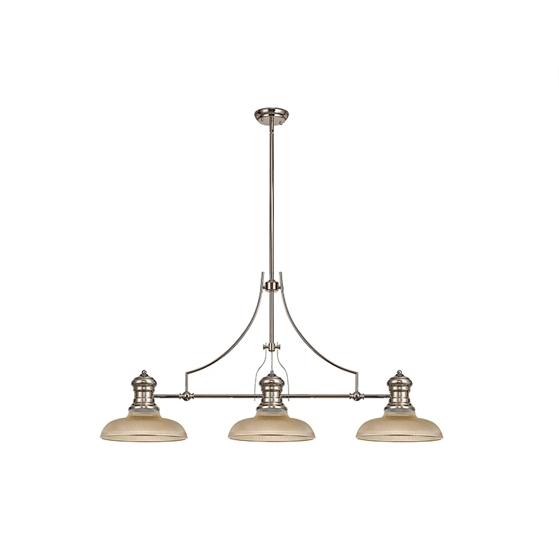 - 3 light bar pendant in a polished nickel, amber finish
