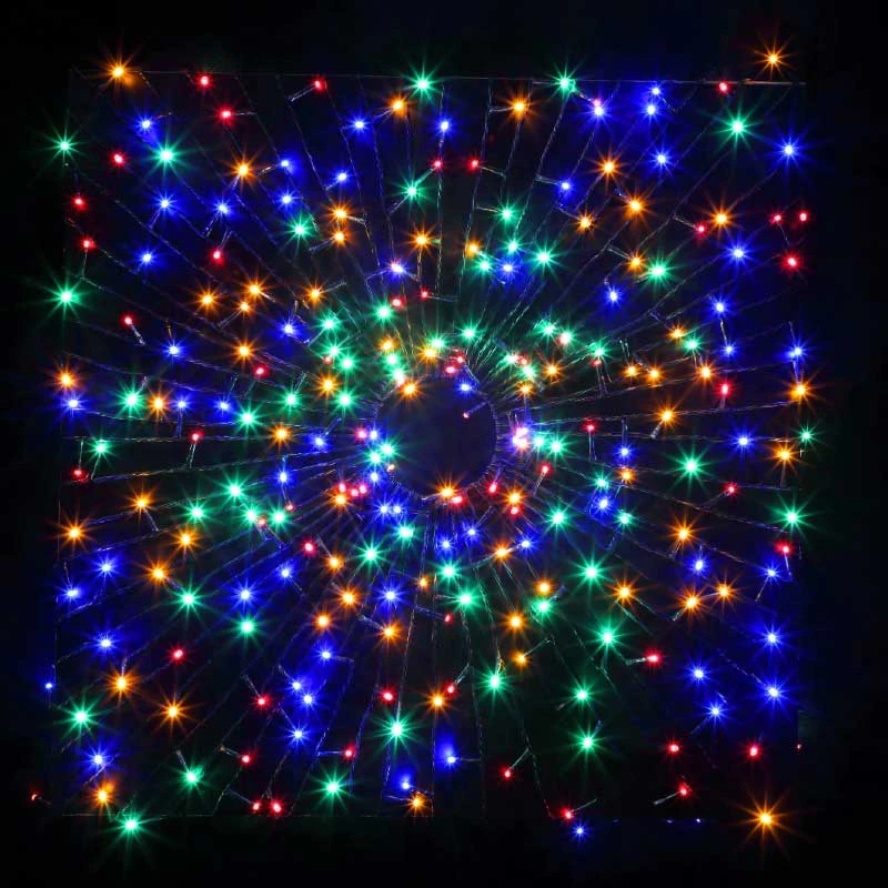 - String light set with 1000 multi-colour LED’s on a green PVC cable with timer feature and 8 multi-function options