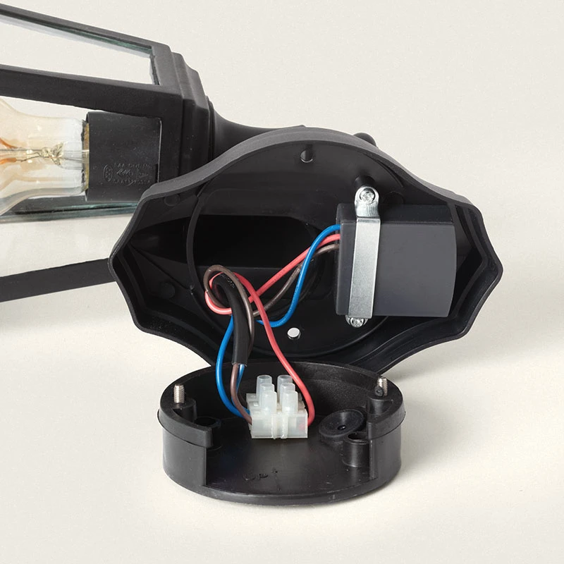 - Outdoor polycarbonate coastal wall light in a black finish with 4 clear glass panes