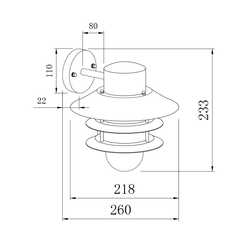 Overall – H 233 x W 218 x D 260mm
