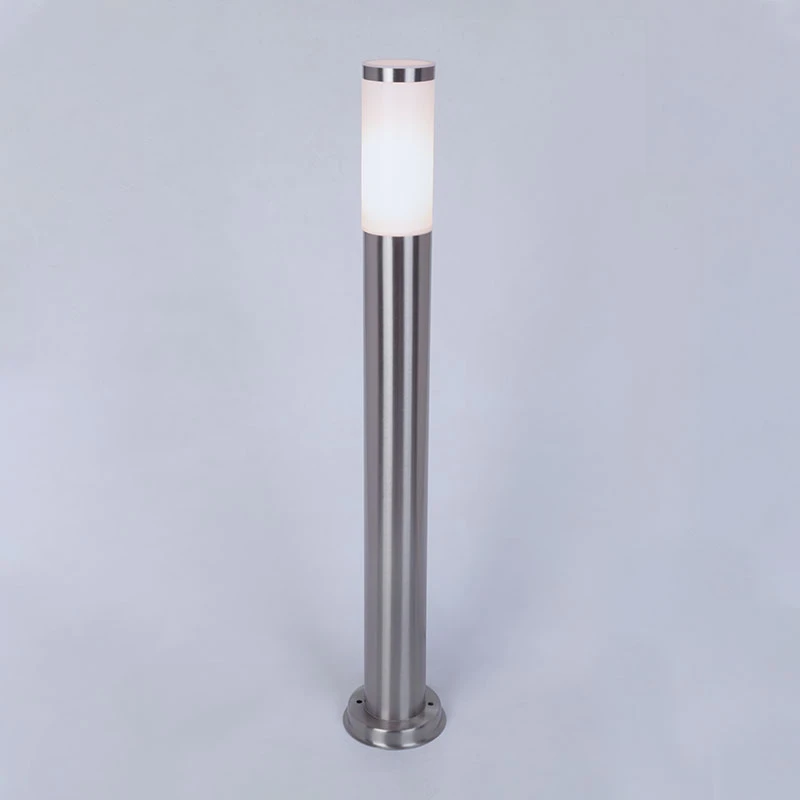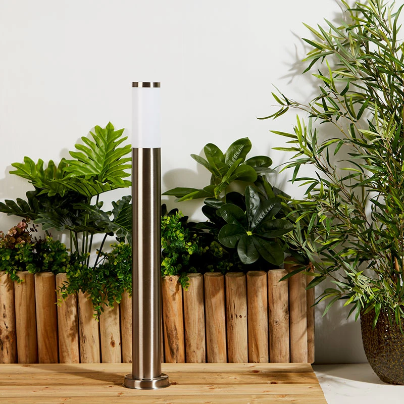 - Stainless steel outdoor post light with an opal polycarbonate diffuser