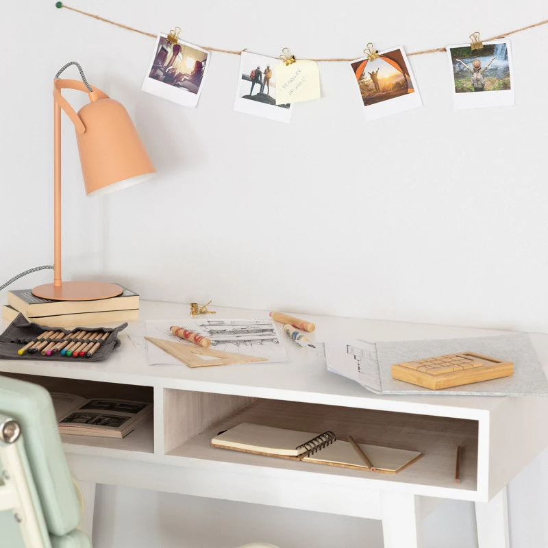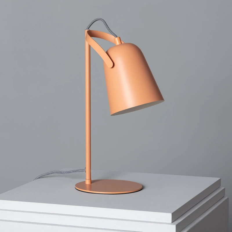 - Single light desk lamp in a white, terracotta finish