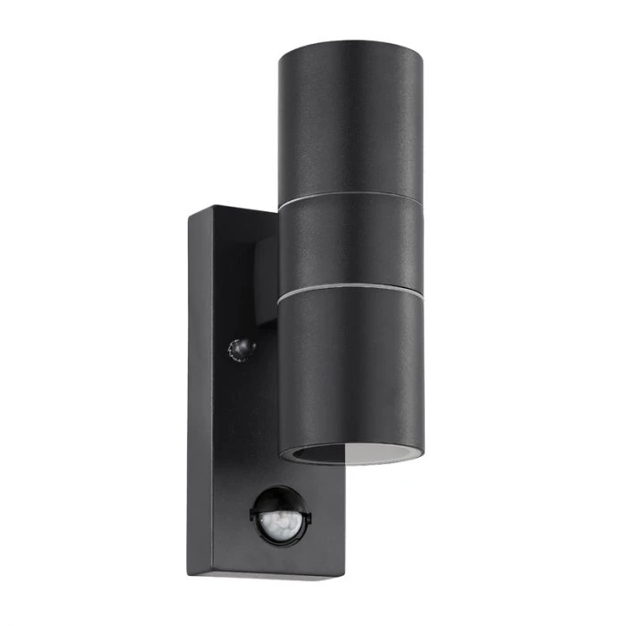 - Stainless steel outdoor wall light in an anthracite finish with PIR movement sensor