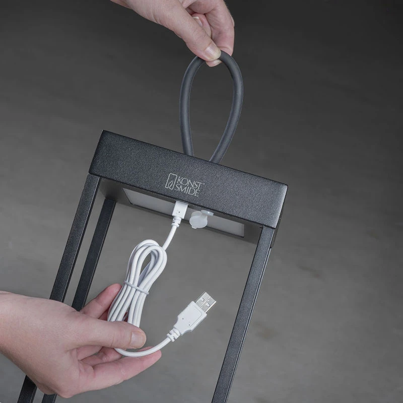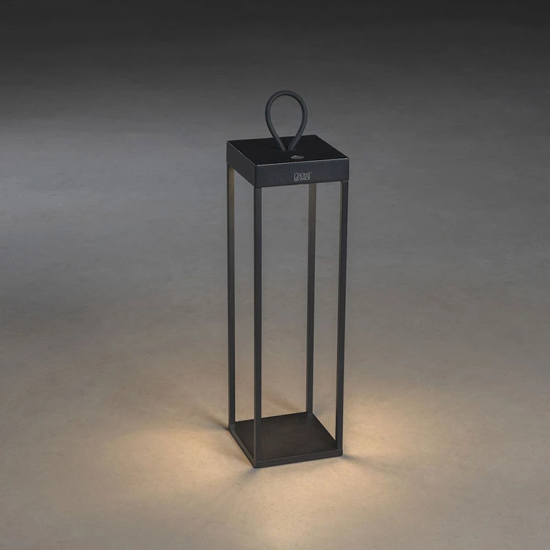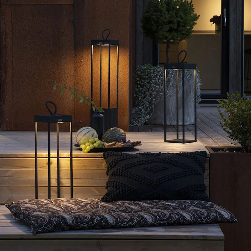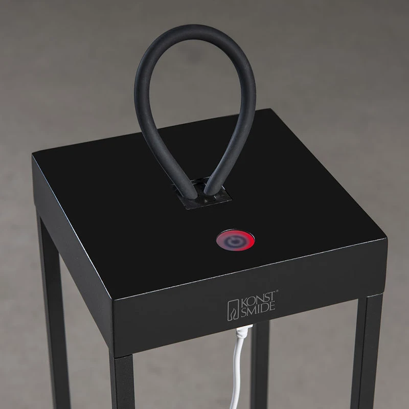 - Tall portable and rechargeable Ravello feature floor lantern in a black finish with on/off touch switch and dimmability settings