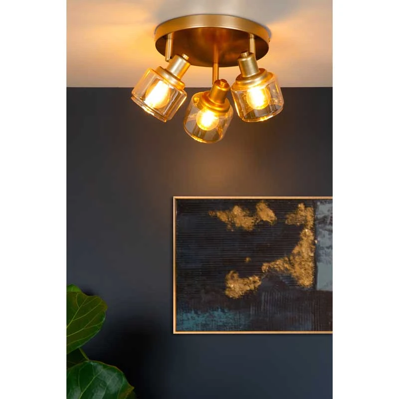 - 3 light spotlight plate in a matt gold finish with champagne glass shades