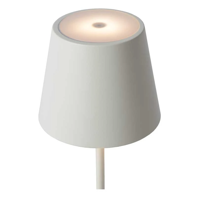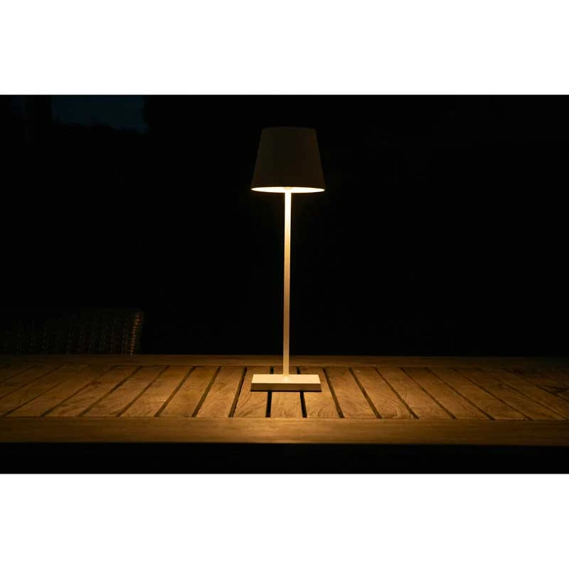 - Outdoor LED aluminium table lamp in a white finish with polycarbonate diffuser. Operate using on/off switch and 3-step touch dimmer switch
