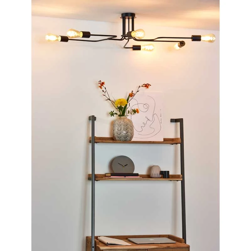 - 6 arm semi-flush ceiling light in a black finish