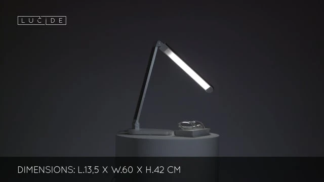 - LED Desk light in a white finish with adjustable arm and dimmable function