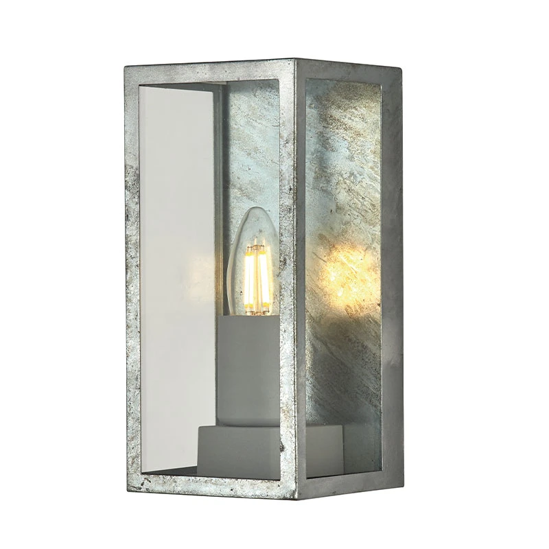 - Coastal galvanised steel half lantern wall light with clear glass panes