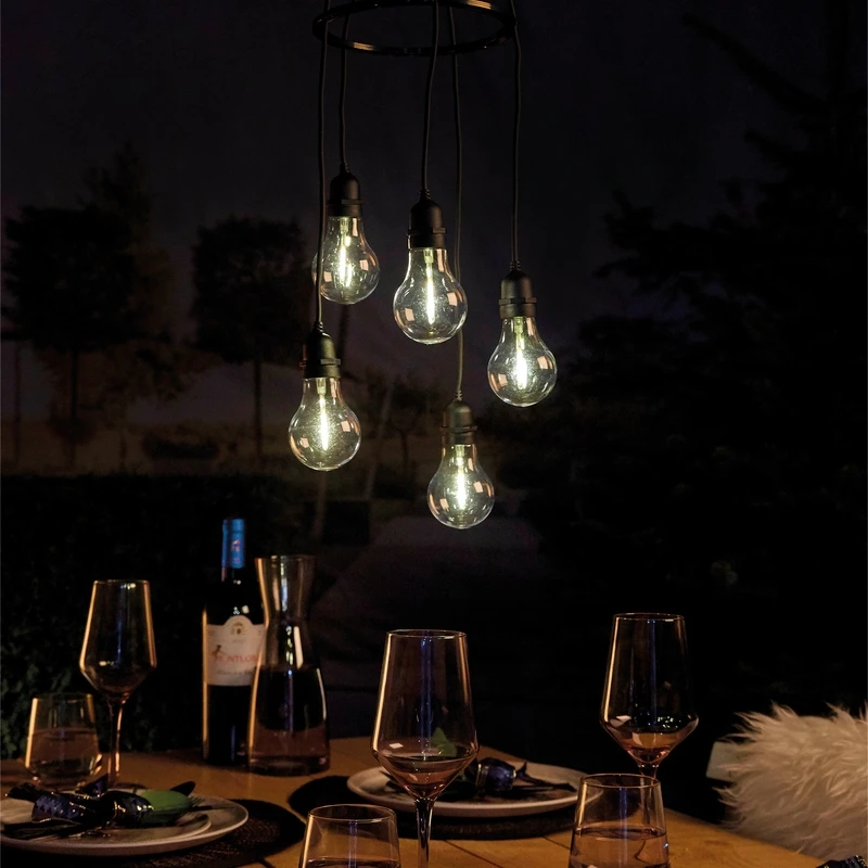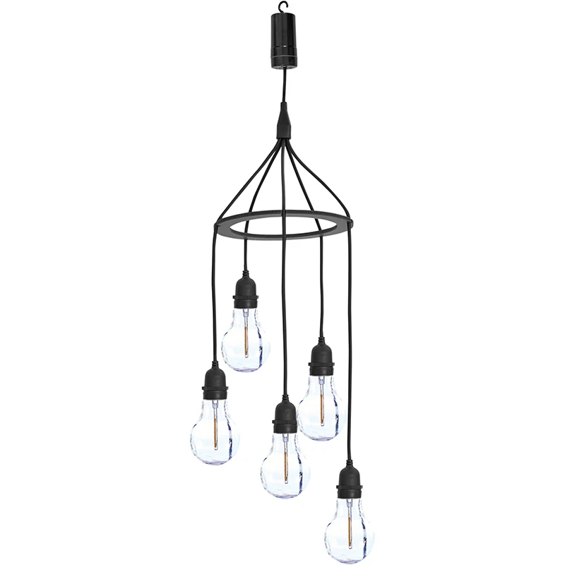 - Battery operated LED feature cluster pendant light in a black finish with 5 lights