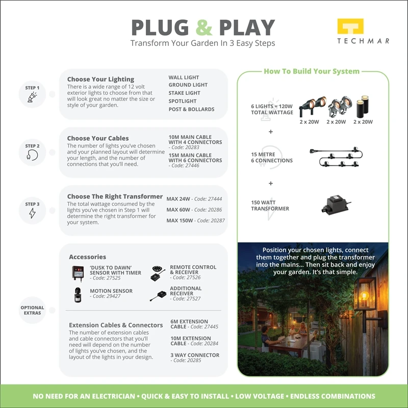 - Designed to be used with the Techmar Plug and Play connectable lighting range